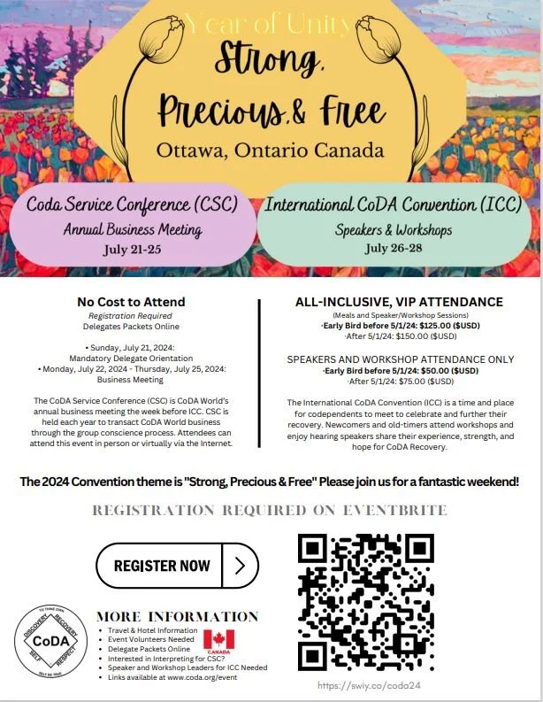 The infoline is available to assist callers in finding a meeting, or to give general information about the program of Codependents Anonymous.